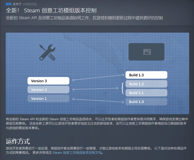 Valve近日正式推出Steam创意工坊“模组版本控制”功能,该功能将有效解决长期困扰玩家的模组失效问题。
