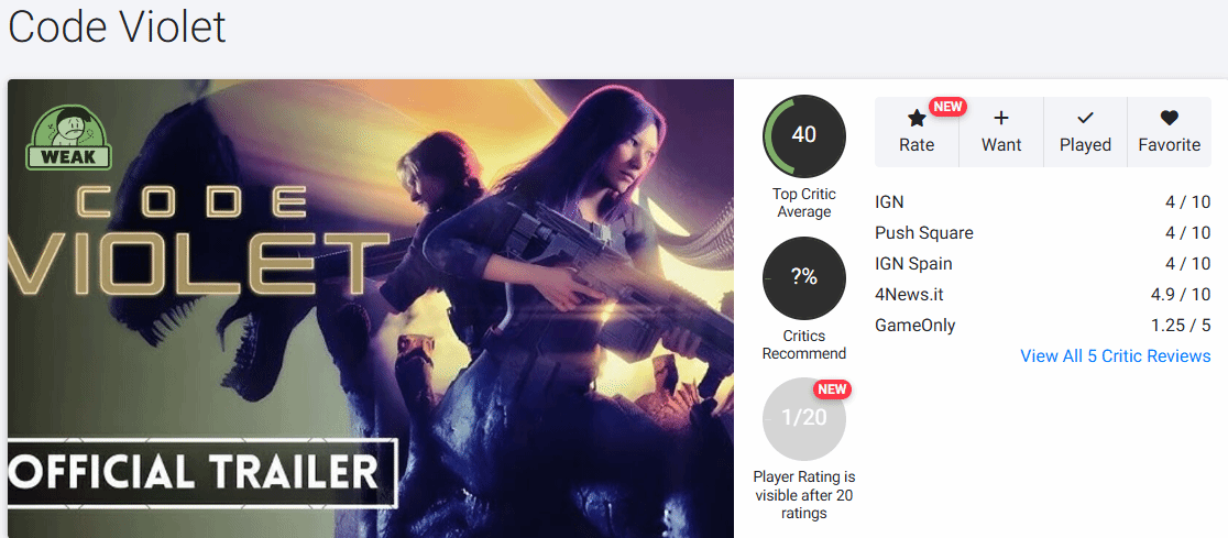 除了媒体评价不佳,《Code Violet》在玩家社区也遭到了猛烈批评。推主@Code Violet公开表示:“《Code Violet》绝对是我玩过的最差劲的游戏之一。我完全无法理解,开发团队为何会认为这样一款劣质游戏能卖出如此高的价格。我在Steam平台上玩过的10美元虚幻引擎移植作品,体验都比这款游戏好得多。IGN给出的4分,其实都高估它了。”