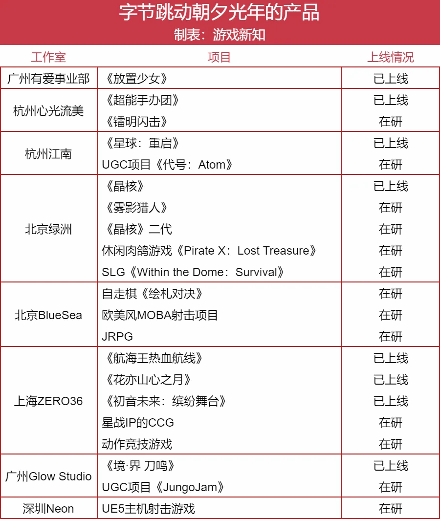 此次交易后,仍有多个工作室保留在字节跳动体系内,具体包括: