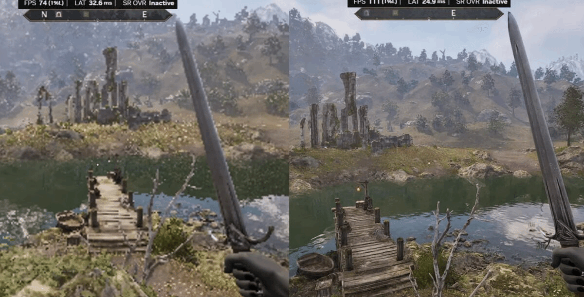 值得注意的是,这一画质改善并非简单的单帧画面增强,而是DLSS技术整合运动轨迹数据、历史画面帧等多元信息,通过AI算法重新构建画面的结果。不过该技术在动态场景中仍存在明显短板:像发丝、栅栏这类细节密集的物体,容易出现闪烁或破碎的现象;而界面文字在超低分辨率的基础上,也难以被清晰还原。