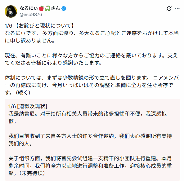然而项目进展并未如预期顺利,2024年发售的承诺落空,游戏陷入无限期延期。直至2025年12月31日,Narunii才公开项目困境:负责项目的导演兼程序员已离职,导致开发工作完全停摆。他同时坦诚,自己缺乏专业的游戏开发经验与相关知识,甚至无法准确判断项目的实际推进程度。更让支持者担忧的是,《誓约之渊》的开发尚未取得实质性突破,现有代码量有限,后续大概率需要推倒重来,而当初众筹的资金如今仅剩约1000万日元。