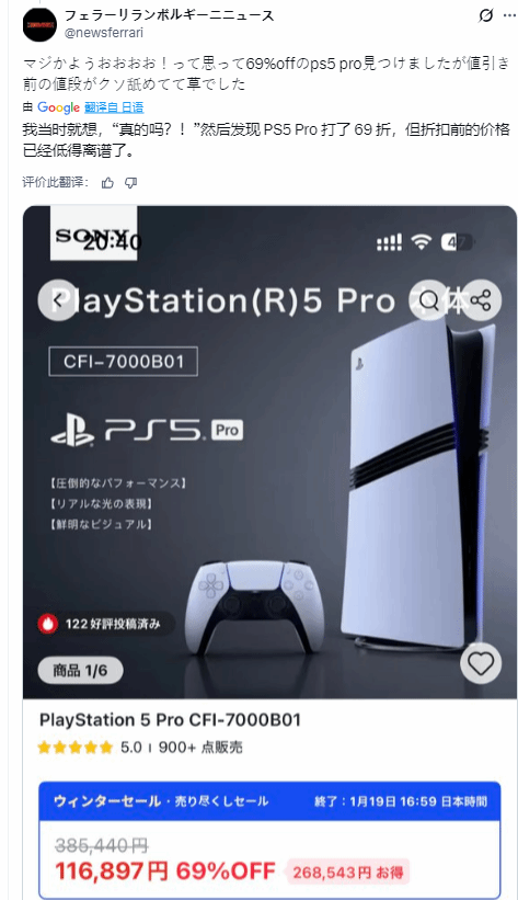 一位日本网友在阿里巴巴旗下跨境电商平台全球速卖通(AliExpress)上,以超乎想象的低价入手了一台PS5 Pro,这一幸运事件迅速在玩家社群内引发热烈讨论,成为众人热议的焦点。
