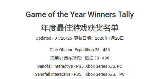 奖项纪录已然定格,但关于这款游戏的争议或许才刚刚起步——在你眼中,《光与影:33号远征队》的登顶是实至名归,还是奖项体系加持下的结果?欢迎在评论区分享观点及理由。