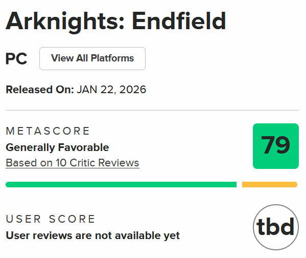 鹰角网络3D即时策略RPG《明日方舟:终末地》的Metacritic(M站)媒体评分公布,本作定于1月22日登陆PC、PS5、Android及IOS全平台,首发媒体口碑已初步揭晓。