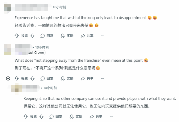 还有玩家表达了对IP沉寂的担忧:“他们只会死死攥着这个IP不放,任其蒙尘,自己不开发,也不让别人有机会接手。”即便育碧有意出售版权,粉丝也难掩悲观,有玩家表示:“真要卖,大概率会落到不知名的手游厂商手里,把这个系列最后一点底蕴榨干。”