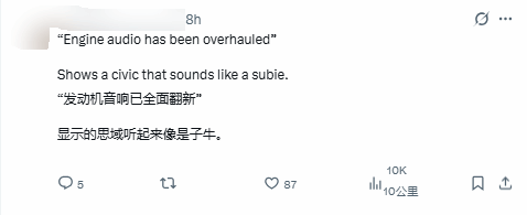 细节层面,有细心玩家提出疑问:官方虽提及将重置所有引擎音效,但演示里思域Type R的直列四缸引擎声,听感却与斯巴鲁的水平对置引擎颇为相似,期待后续能优化音效还原度。此外,不少使用方向盘外设的玩家表示,希望本代能针对性优化外设适配效果,提升模拟驾驶的操作手感。