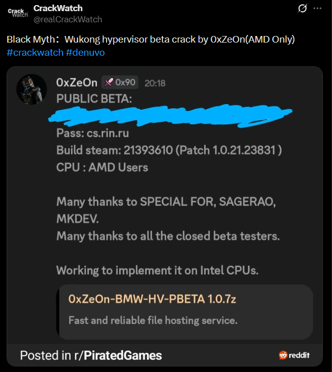 曾成功破解《死亡空间:重制版》的知名黑客0xZe0n,在针对《黑神话:悟空》Denuvo加密发起破解测试后,现已取得实质性进展。据外媒playground.ru消息,该黑客已公开放出破解测试版,不过这套方案不仅硬件限制严苛,还暗藏不小的系统安全隐患,引发业内争议。