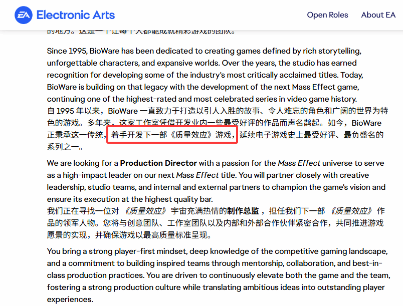EA近期挂出的招聘信息中,一则“制作总监”岗位格外吸睛,其核心职责明确标注“着手开发下一步《质量效应》”,直接坐实了新作开发的推进动态。作为系列的灵魂开发商,BioWare此次公开招募核心岗位,意味着项目已突破概念设计瓶颈,亟需核心管理者牵头搭建团队、推进落地。
