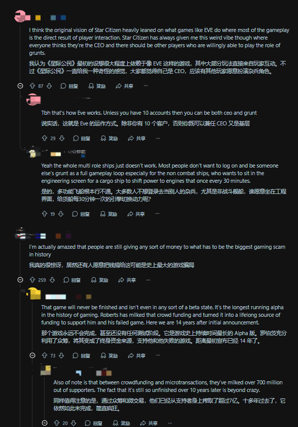 1月25日,外网知名玩家社区reddit上,一篇吐槽《星际公民》的帖子迅速发酵引发广泛讨论。发帖者直言对这款游戏极度失望,认为其品质完全配不上耗时十余年、筹资金额逼近10亿美元的投入规模。