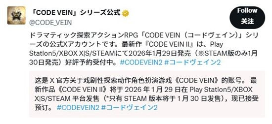 万代南梦宫旗下“黑魂动画版”ARPG《噬血代码2》(Code Vein 2)将于1月29日正式发售,豪华版与终极版玩家已解锁提前体验资格。外媒消息显示,本作主线流程约25至30小时,与前作时长相近,却因远短于传统JRPG 60至80小时的常规体量,引发玩家对内容厚度的讨论。