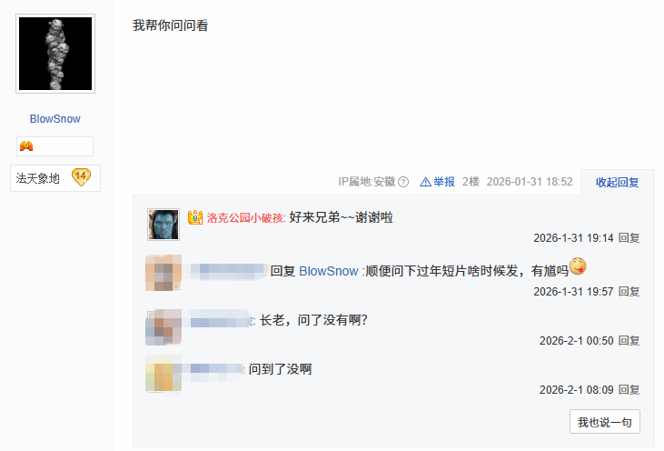 此事引发网友关注,一位疑似业内人士的网友主动留言表示“我帮你问问看”,玩家也及时表达了感谢。