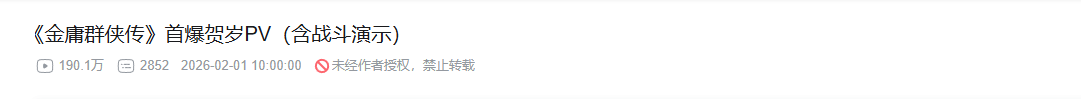 作为金庸IP衍生的开放世界新作,该PV的热度发酵速度超出预期,上线后短时间内便在B站斩获超高关注度,播放量直接突破190万次。其中,实机片段的核心亮点的是主角与黄蓉、莫大的精彩对打,招式细节与战斗氛围感被清晰呈现,成为网友热议的焦点。