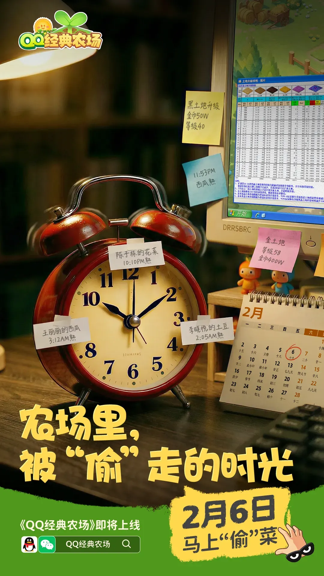 《QQ经典农场》官方官宣,这款QQ空间经典小游戏《QQ农场》的高清复刻版,将于2月6日正式回归,同步登陆QQ与微信双平台。