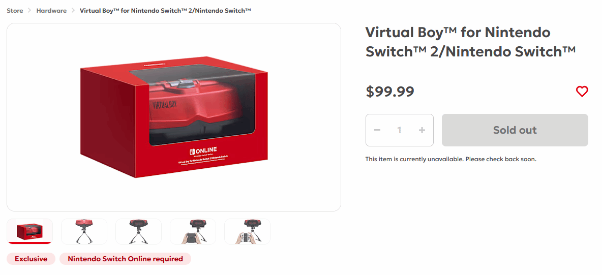任天堂曾被视为“最大败笔”的硬件产品Virtual Boy,近期意外迎来热度爆发,甚至还未到2月17日的正式发售日期,就已在美国市场宣告售罄,上演了一场从低谷到热门的命运反转。