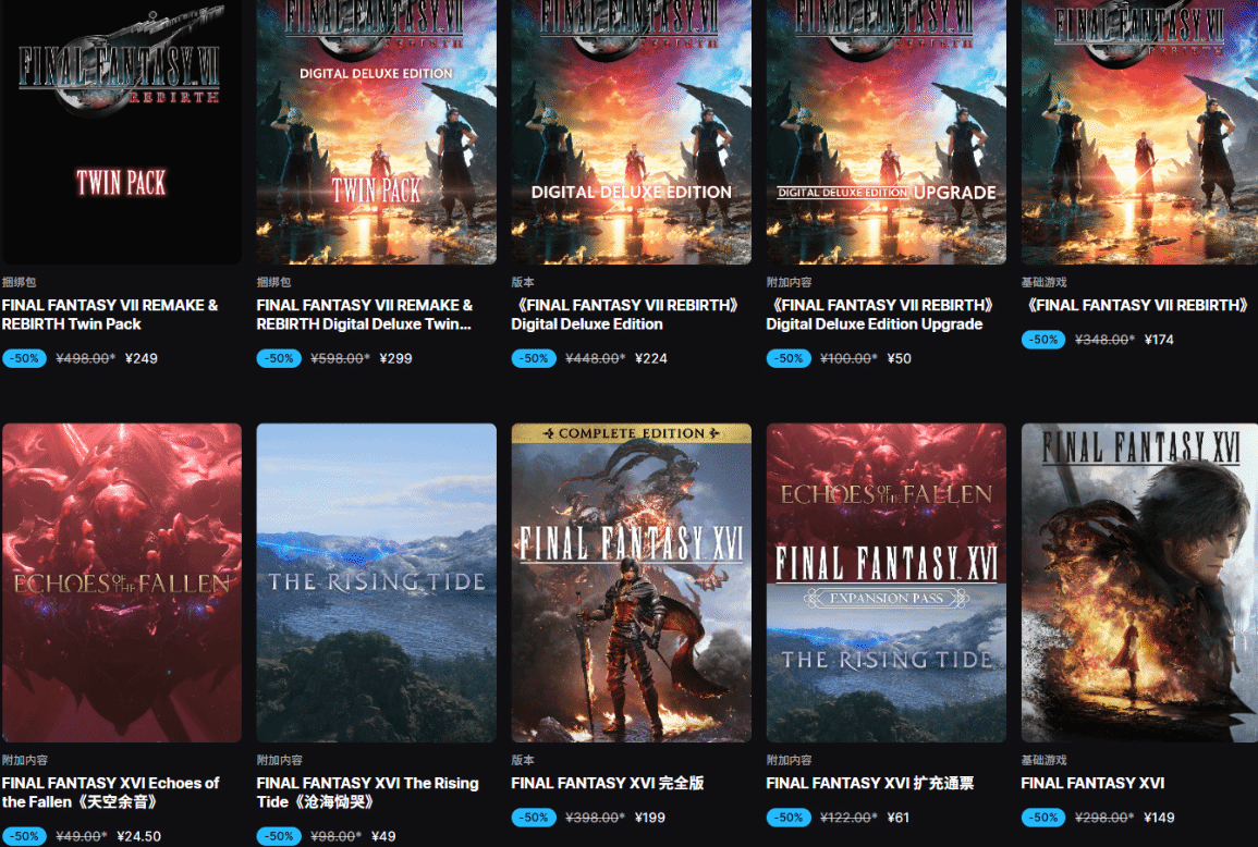 本次SE特惠涵盖多款经典及热门作品,每款游戏均给出诚意满满的折扣,具体如下: