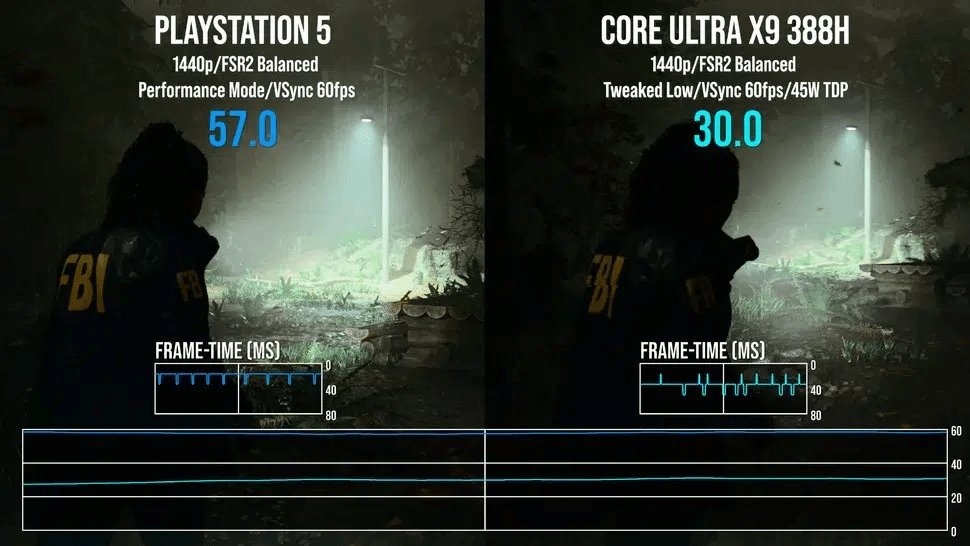 当然,测试团队也客观指出,尽管这一成就对移动芯片而言已经足够惊人,但英特尔新集显与当下最强主机仍有明显差距。其中,与PlayStation 5相比,索尼这款主机在相同测试条件下,性能输出几乎能达到Arc B390的两倍,两者的差距依然显著,集成显卡想要追上顶级主机性能仍有很长的路要走。