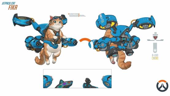 这只猫咪英雄的设计渊源可追溯至2017年。当年GameSpot采访时,时任《守望先锋》总监杰夫·卡普兰透露,暴雪团队早有设计猫咪喷气背包英雄的想法,但因觉得设定离谱而放弃,不过团队确实完成了其初步设计。