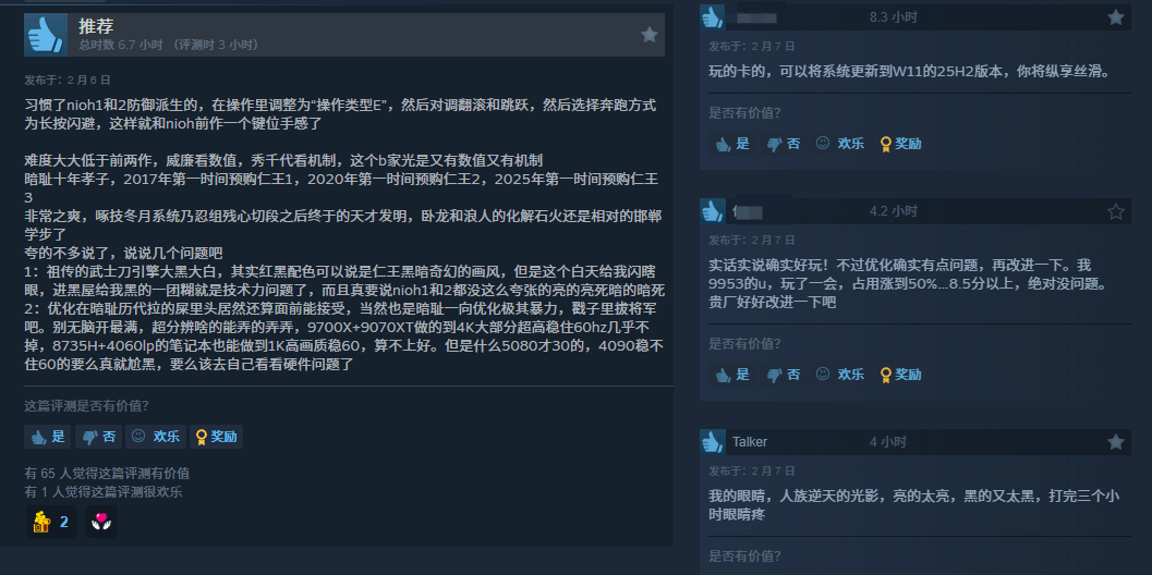 光荣特库摩旗下黑暗战国动作RPG《仁王3》登陆Steam后口碑两极分化,目前累计1519条用户评测中80%为好评,整体升至“特别好评”,核心反差集中在优质战斗体验与拉胯技术优化之间。