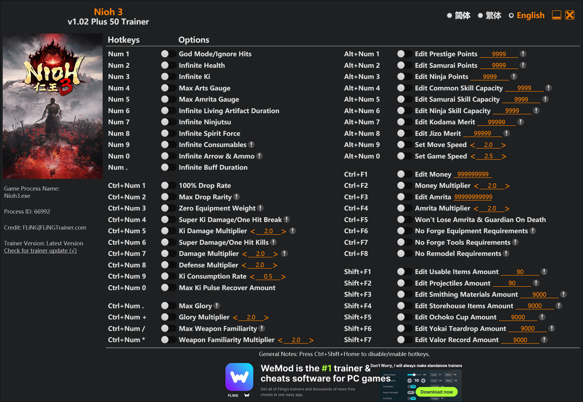 而风灵月影此次推出的《仁王3》专属修改器,恰好精准击中了玩家的这一核心痛点。作为玩家群体中极具知名度的修改器品牌,风灵月影向来以功能全面、操作便捷著称,其推出的修改器覆盖无限生命、无限技能点、超级伤害等实用功能,能够灵活适配不同玩家的需求,无论是想轻松通关、体验剧情,还是想适度降低难度、慢慢熟悉玩法,都能通过修改器实现。