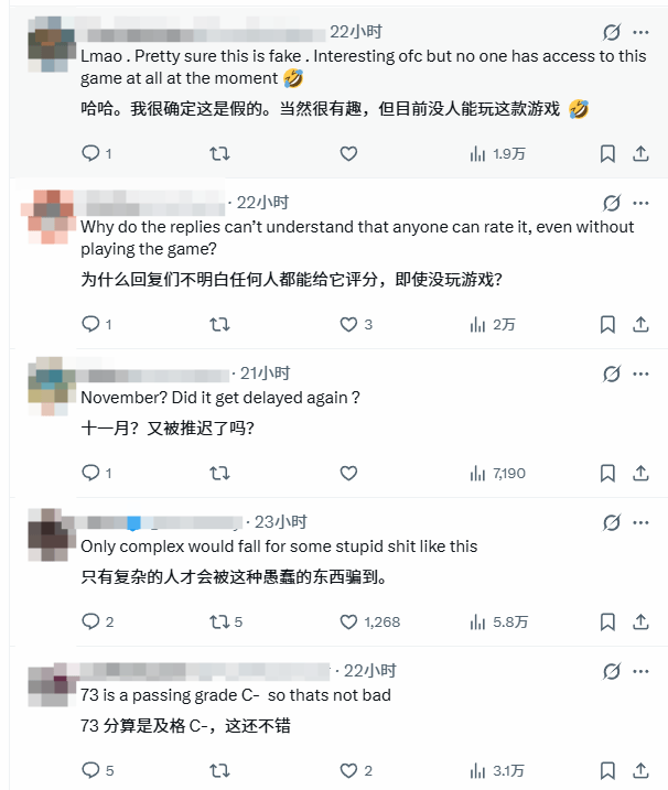 这些所谓的“评测”内容更是五花八门,离谱中带着趣味。有用户自称在Xbox Series X上测试了该游戏,详细描述其帧率仅能维持在30-40fps,一边肯定画面相比前作有大幅提升,一边吐槽剧情存在明显重复感;还有用户写下的“游玩体验”堪比梦境,细致描绘了在Vice City的场景细节、NPC互动以及天气系统等内容,仿佛真的亲身玩过;更有甚者声称,自己已经100%完成了游戏全部内容,还斩获了“电子游戏史上不可思议的成就”,引来不少网友调侃。