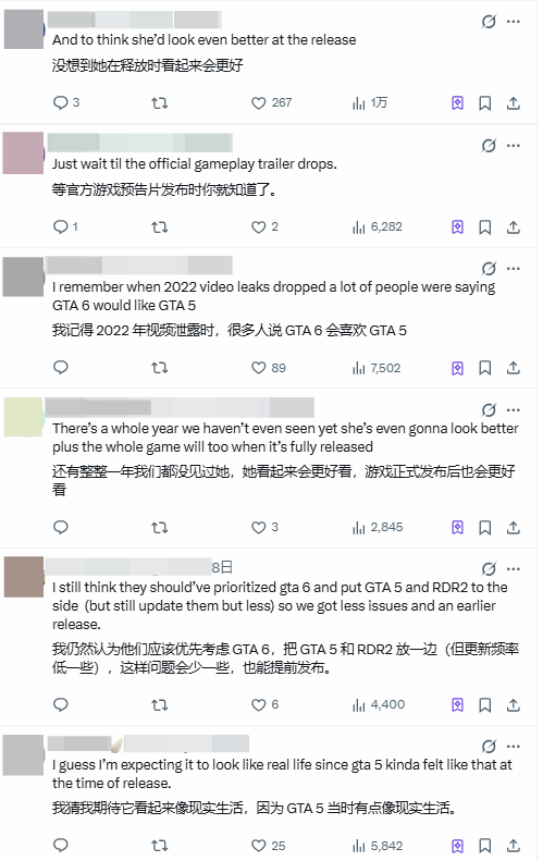 细节上,有细心的玩家留意到,最新版本的露西亚去掉了早期建模中面部的细碎黑痣,让脸部轮廓更显干净清爽,这一细微调整也成为颜值进化的点睛之笔。露西亚的建模迭代,也收获了玩家群体的广泛认可,不少玩家表示,R星向来有在游戏正式发售前持续优化画面与角色建模的传统,如今预告片阶段的露西亚已达到这般水准,正式版的表现无疑更值得期待。