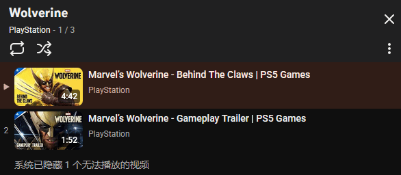 就在官方官宣发布会后不久,有细心玩家在PlayStation官方Youtube账号的《漫威金刚狼》专属播放列表中,发现了一个被隐藏的私享视频。结合发布会临近的时间点,不少玩家推测,这段隐藏视频大概率是《漫威金刚狼》的全新宣传片,有望在此次State of Play发布会上正式曝光,成为发布会的一大亮点。