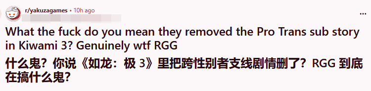 有玩家直言不讳地批评:“删掉它真的让人失望,毕竟这段剧情唯一可能冒犯到的只有恐跨者。”而这场争议的背后,是《如龙:极3》对原作支线的大规模舍弃——据IGN完整评测显示,原版《如龙3》拥有119个支线任务,而重制版仅保留31个,将近四分之三的支线被砍掉,其中不乏诸多玩家耳熟能详的经典桥段。