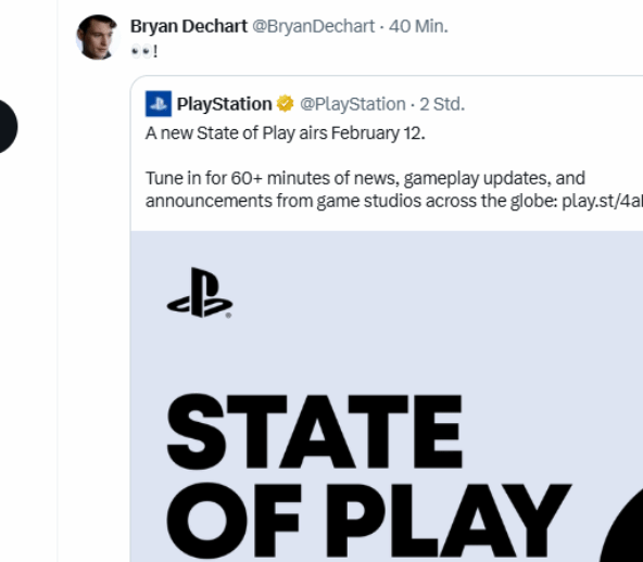 索尼PlayStation State of Play游戏发布会在即,就在玩家翘首以盼之际,一则来自知名游戏演员的暗示,为这场即将到来的盛会增添了更多神秘感。作为互动电影式游戏的经典代表作,《底特律:化身为人》的核心演员布莱恩·德查特,近日低调透露,自己将与本次发布会产生关联,疑似有惊喜内容即将揭晓。