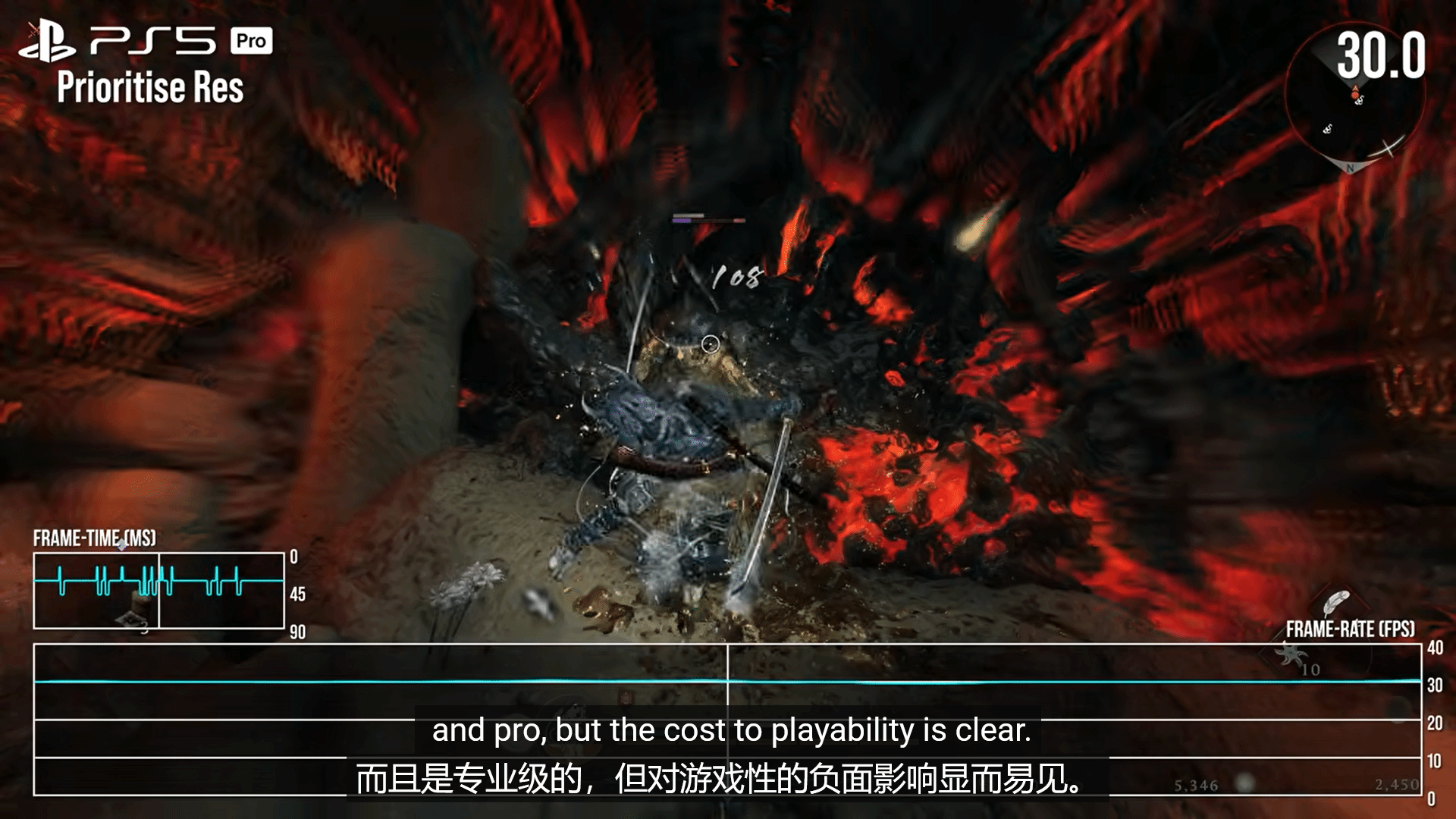 更令人不满的是画质模式的表现:该模式下游戏被锁定在30帧,但存在严重的帧时间不稳定问题,画面卡顿感明显,数毛社明确表示强烈不推荐玩家使用该模式。除此之外,无论玩家选择哪种游玩模式,游戏内所有过场动画均被锁定为30帧,且同样存在帧时间不稳的问题,严重影响观影体验。