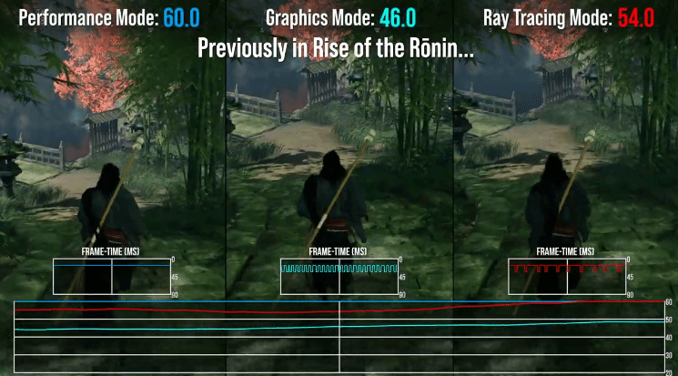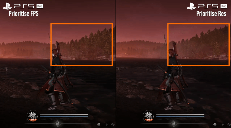 标准版PS5与PS5 Pro两款主机,均为《仁王3》提供了两种运行模式选择——以流畅度为核心的“性能模式”(目标帧率60帧/秒),以及侧重画面精细度的“分辨率模式”(帧率限制在30帧/秒)。两款主机的画面基础设置大致相同,核心差异在于PS5 Pro具备更清晰的屏幕空间反射效果,且阴影的绘制范围更远一些。值得一提的是,与《浪人崛起》(Rise of the Ronin)相比,《仁王3》并未加入反射光线追踪功能。