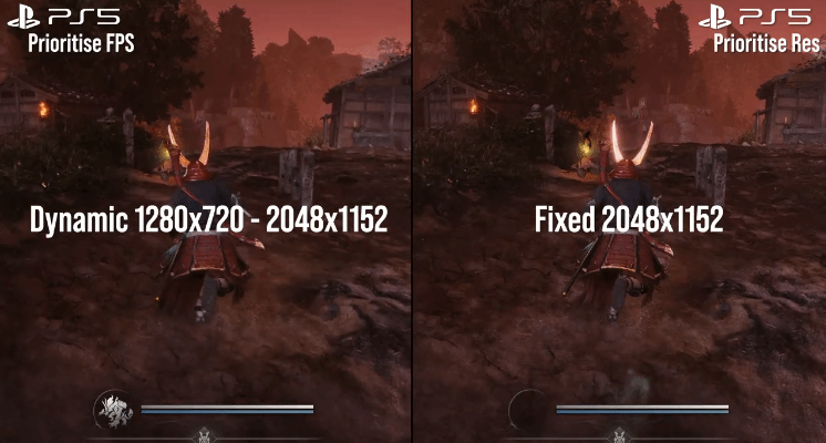 两款主机在原生分辨率上的差距较为突出。其中,PS5 Pro开启“性能模式”时,动态分辨率区间为792p至1296p,切换至“分辨率模式”后可稳定达到1440p;标准版PS5在“性能模式”下,动态分辨率会降至720p至1152p,“分辨率模式”则固定为1152p。