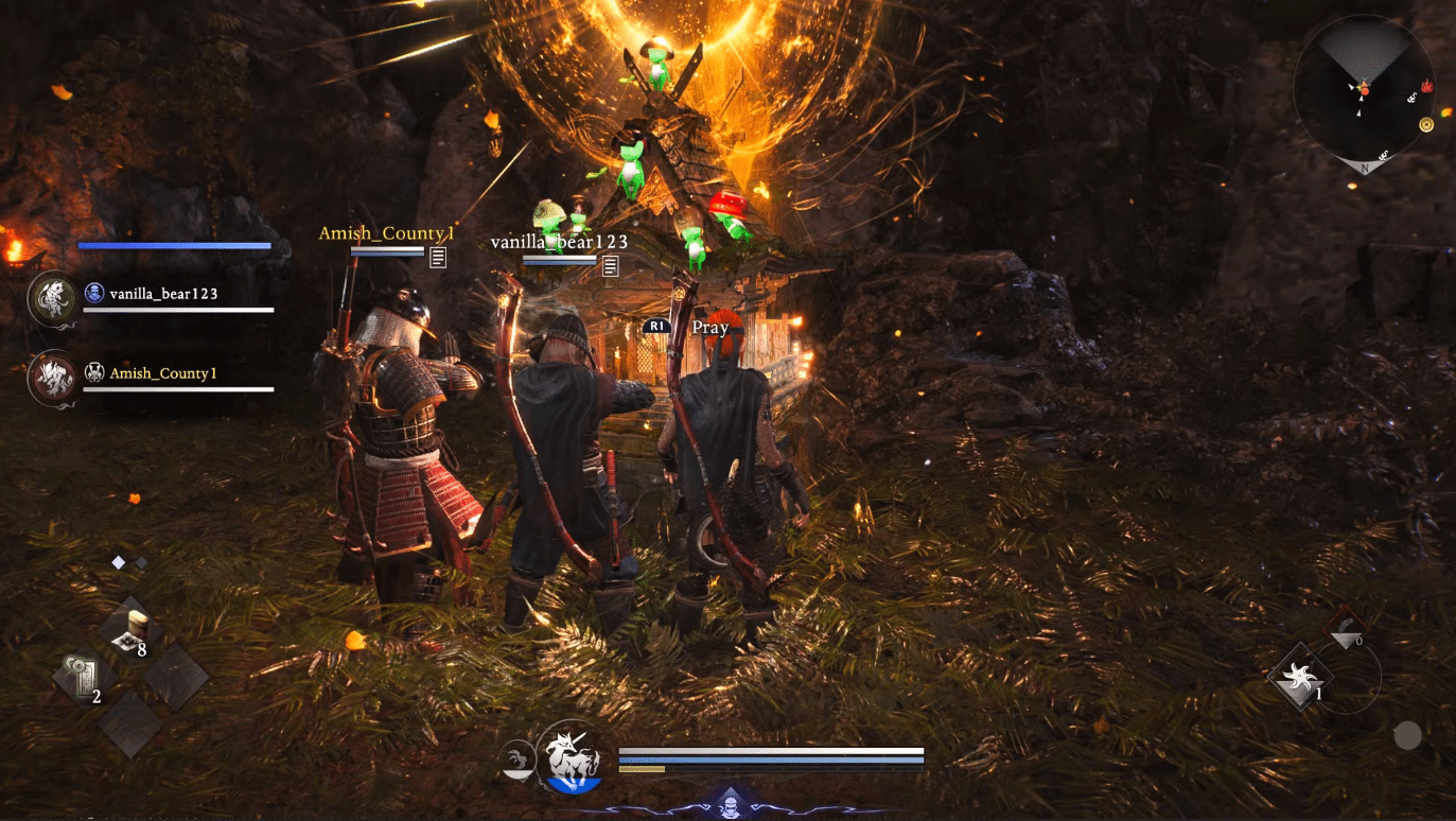 相较于《艾尔登法环》繁琐的联机流程,《仁王3》简化了操作,提供多种匹配方式,玩家可直接匹配或用密码邀请好友,组队打BOSS、探索地图都十分便捷,大幅降低联机门槛。