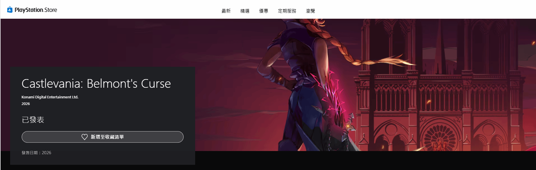 2月13日,科乐美正式在Steam、PS5等数字平台上线了《恶魔城》系列新作《恶魔城:Belmont's Curse》的商店页面,并开放愿望单功能。与此同时,海外零售商Best Buy也悄然挂出了该游戏的实体版预购信息,标价为39.99美元,封面设计已对外展示,但发售日期仍未公布。