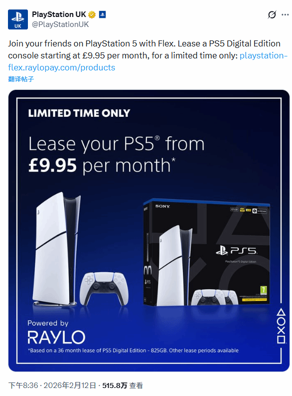 索尼近期在英国与租赁公司Raylo合作,推出名为“PlayStation Flex”的硬件租赁计划,允许用户按月租用PS5主机及相关配件。表面上看,这项服务主打低门槛——宣传称“每月9.95英镑起”即可使用PS5,但实际条款远比广告所暗示的复杂且昂贵。