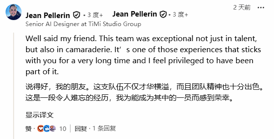 工作室关闭的消息传来后,不少离职员工在领英上抒发了自己的感慨与不舍。一名高级玩法程序员写道,尽管团队早已预料到会有这样的结果,但当关停成为现实时,依然难以接受这份遗憾;另一名高级设计师则感慨,这支团队不仅汇聚了众多才华横溢的从业者,成员之间也有着深厚的情谊,这段共事经历将成为难忘的回忆,能成为其中一员,他深感荣幸。