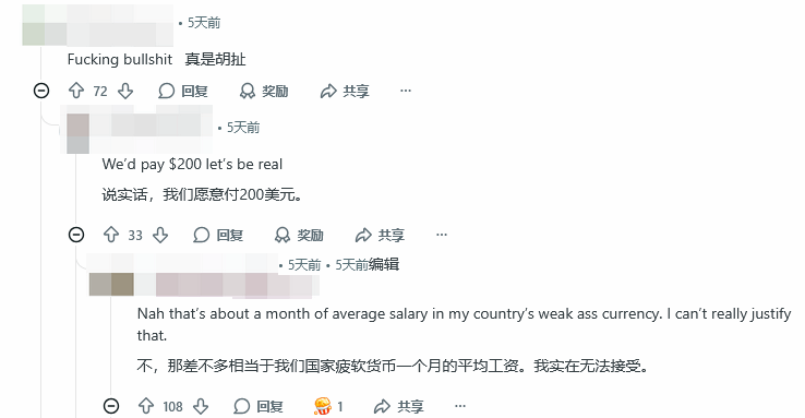 争论的核心集中在“定价与价值是否匹配”上,玩家观点两极分化十分明显。不少玩家直言这是“漫天要价”,吐槽定价过高脱离大众预期,有玩家调侃式表示“付200美元都乐意”,却立刻被其他玩家反驳,有玩家无奈表示,别说200美元,就连99.99美元(约840元),都快赶上自己半个月的工资,实在难以承受。