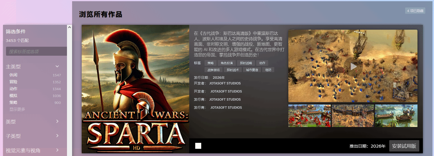 据Steam官方公布的数据,本次新品节规模堪称盛大,至少有3453款游戏参与其中,涵盖休闲、冒险、动作、模拟、策略等多种品类,无论是偏爱轻松解压的休闲玩家,还是钟情硬核操作的动作玩家,亦或是喜欢沉浸式体验的模拟、策略玩家,都能在其中找到适合自己的试玩作品,堪称年度潜力新作的“最佳解锁窗口”。