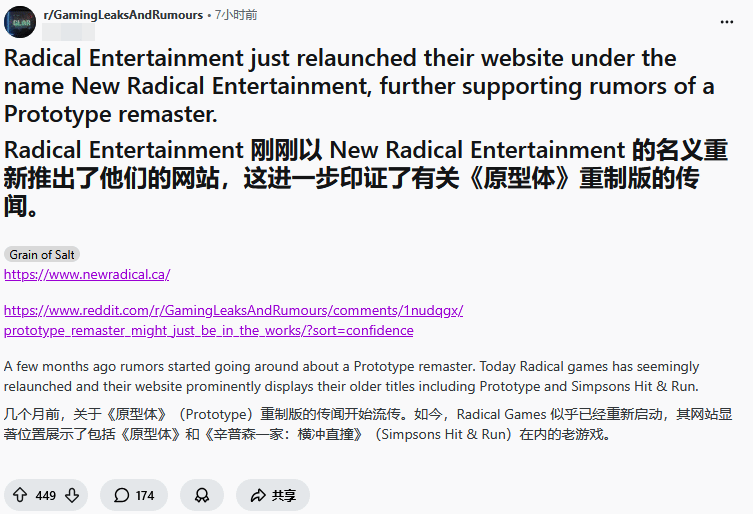 不过,在众人狂欢之余,也有必要冷静看待这一线索——有玩家仔细梳理后发现,诸多细节其实暗藏疑点,复刻计划能否落地仍未可知。首先,New Radical Games只是一家新成立的独立工作室,并不隶属于动视,与原本开发《虐杀原形》的Radical Entertainment,也没有任何官方层面的继承关系,两者之间仅存在精神和血缘上的传承,其核心成员包括Radical Entertainment的创始人在内,有一部分来自原团队。