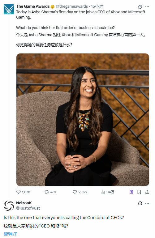 与此同时,社交平台X上的大批网友开始花式调侃这位新CEO,将其戏称为CEO界的《星鸣特攻》(Concord of CEOs)——要知道这款游戏曾因表现不佳遭遇惨败并下架退款,这番调侃里满是网友的嘲讽之意。