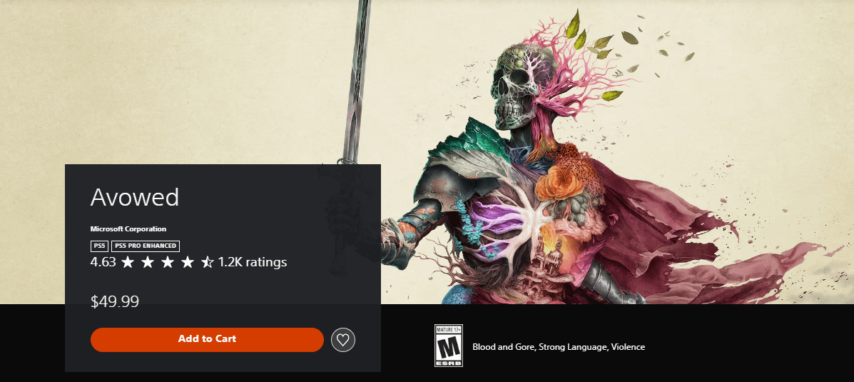 除了经典作品的持续发力,Obsidian Entertainment打造的角色扮演动作游戏《宣誓》(Avowed),登陆PS5平台后也收获了市场的积极反馈。截至目前,该作在PlayStation Store平台已积累1200条玩家评价,评分高达4.63分(满分5分),玩家们对游戏的玩法设计、剧情呈现以及画面表现,均给出了极高评价。