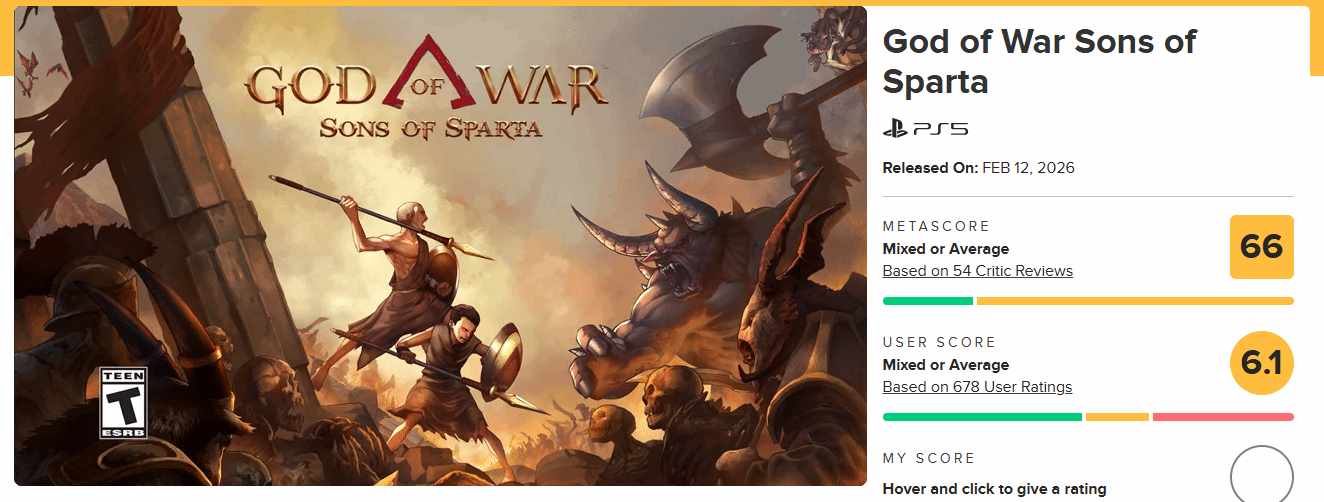 《战神》系列最新作品《战神:斯巴达之子》的口碑再度下滑,其Metacritic(简称M站)媒体评分已从之前的69分跌至66分,创下系列历史新低,而玩家评分更是低至6.1分,与系列一贯的高水准形成鲜明反差。