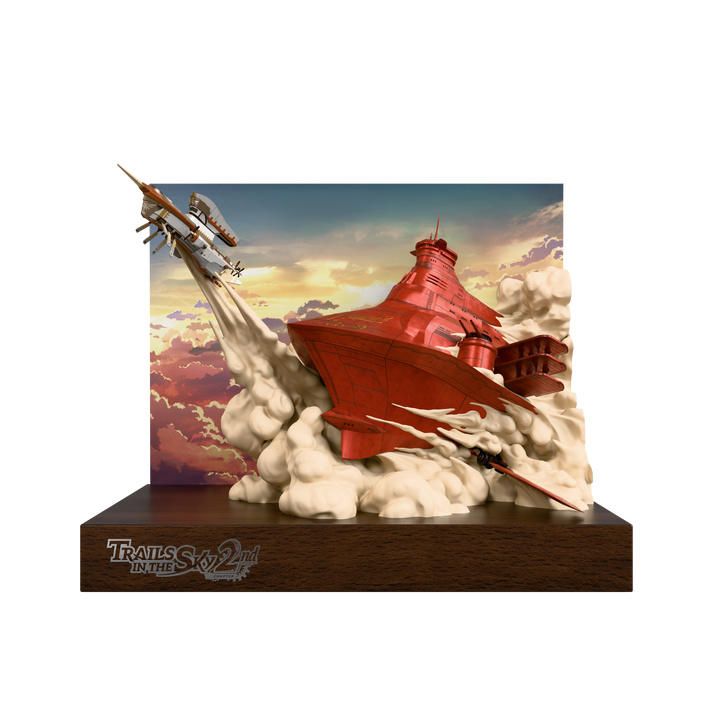 这款典藏版的核心亮点的在于一款精心打造的场景模型,以约1:400的比例,还原了游戏中利贝尔王国战舰“阿尔赛尤”被噬身之蛇空中母舰“古罗力亚斯”追击的经典名场面,模型尺寸约为12英寸×7英寸×10.4英寸,细节拉满,极具收藏价值,也是众多玩家关注的核心藏品。