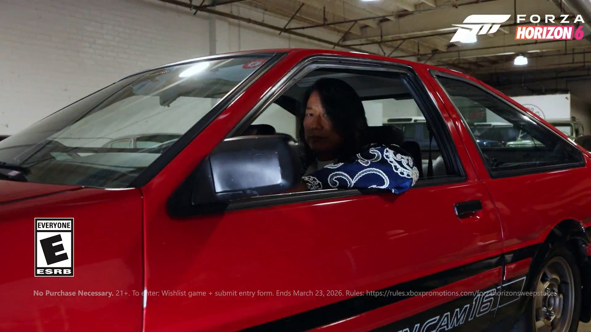 需要注意的是,此次联动并非《极限竞速》系列与《速度与激情》IP的再次合作,这一点在视频中有着明确暗示。成康在视频里特意提及了自己执导的新电影《Drifter》,而官方同步发布的另一张宣传图,更是直接印证了这一点——图中成康以标志性“靠车”姿势出镜,身旁那台加装了Rocket Bunny宽体套件的E80代丰田卡罗拉/Sprinter,正是他在《Drifter》中的专属座驾。