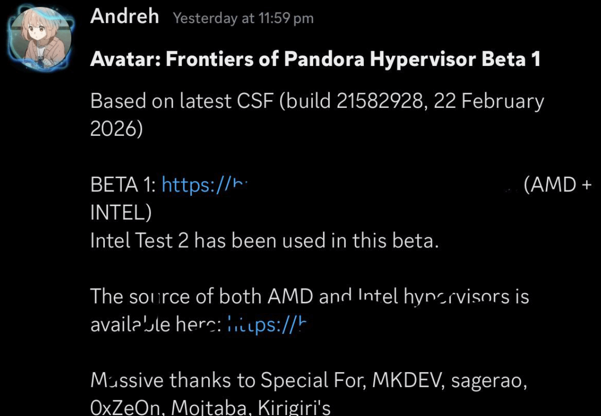 此次突破得益于Andreh使用了一款版本号为Beta 1.0的虚拟机监控程序。该工具兼容性出色,同时支持AMD与Intel两大平台的处理器,且在测试过程中还结合了Intel Test 2技术。随着这一障碍被清除,玩家无需正版验证即可运行游戏的局面已经形成。