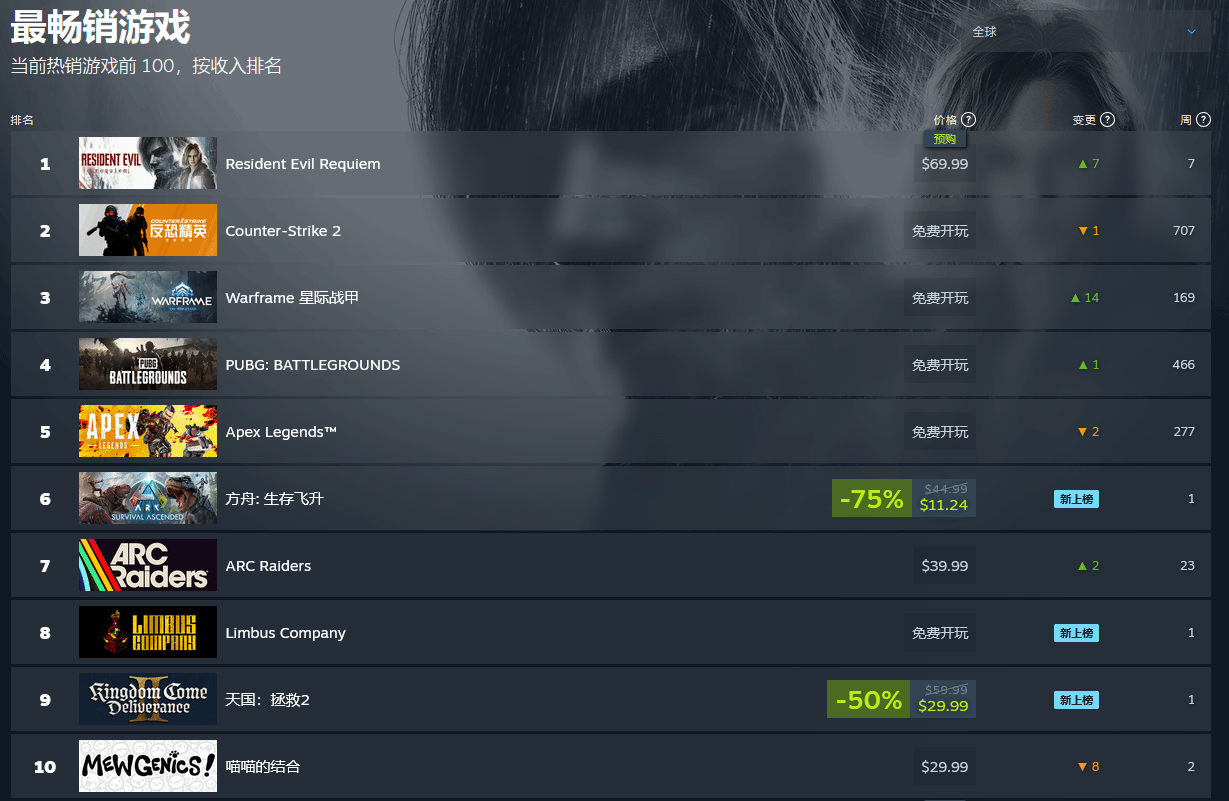 卡普空旗下的最新力作《生化危机9:安魂曲》尚未正式解锁,便已展现出惊人的市场号召力。这款定于2月27日登陆PC、PS5、Switch2及XSX平台的大作,仅凭预购成绩就强势登顶Steam全球游戏畅销榜首位。