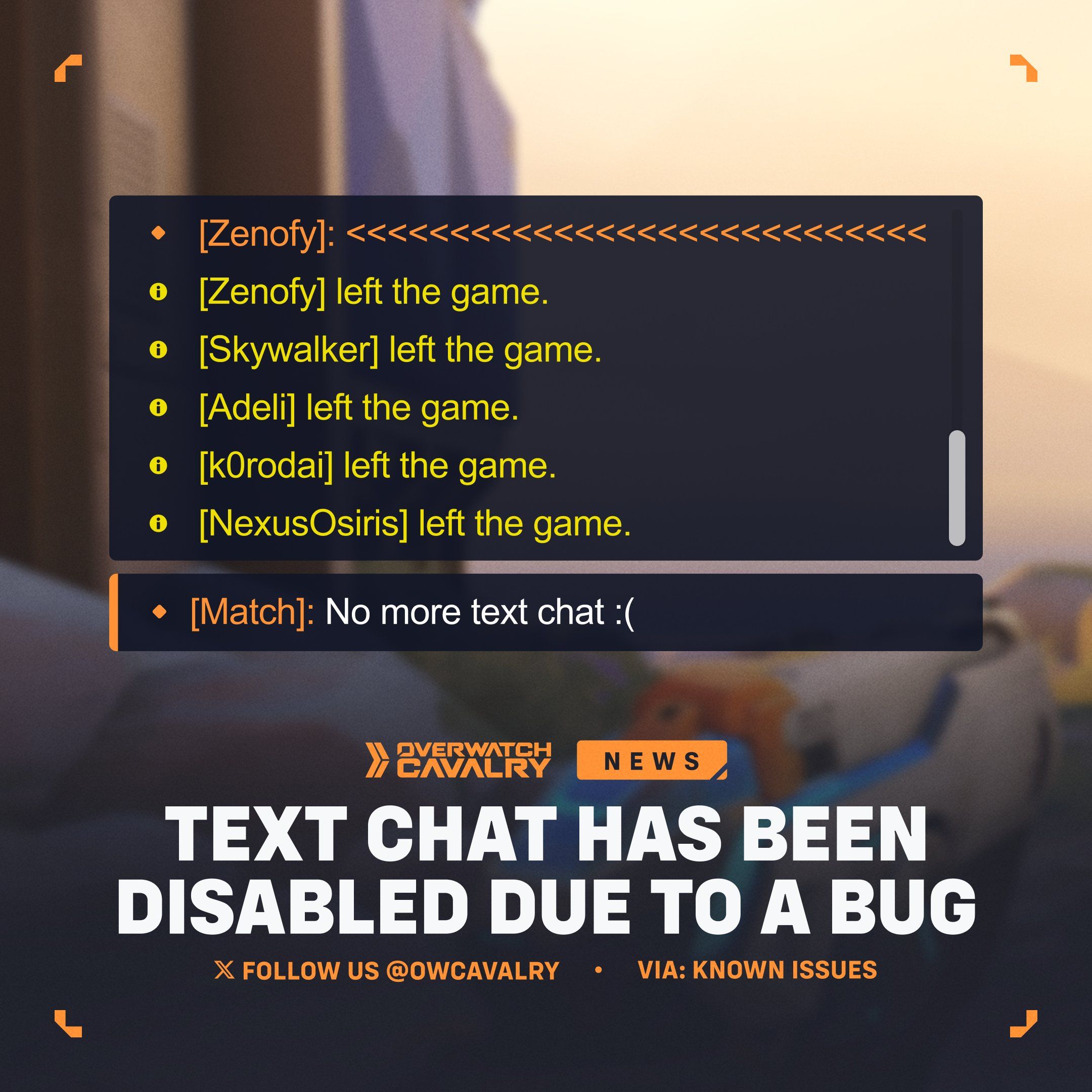 昨日《守望先锋》聊天系统出现严重Bug,玩家只需在聊天框中输入大量“<”符号,就能直接触发“炸房”效果,导致房间内所有玩家的游戏直接崩溃。为避免该Bug持续影响玩家正常游玩,暴雪第一时间采取应急措施,暂时关闭了游戏的文字聊天功能,以此遏制“炸房”现象蔓延。