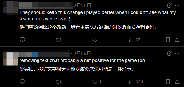 按照常理,对于需要队友实时沟通配合的战术竞技游戏而言,聊天功能关闭无疑会影响游玩体验。但令人意外的是,据PC Gamer报道,不少玩家反而对这段“无线电静默”的时期倍感舒适——没有了聊天框里的指责、谩骂,不用再为操作失误被队友吐槽,游戏体验反而变得轻松自在。