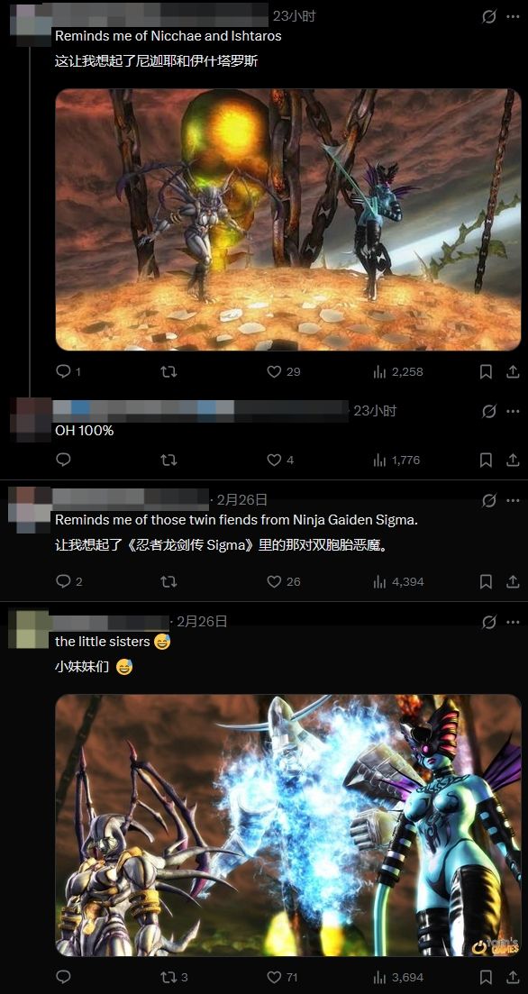 除了调侃与喜爱,也有不少系列老玩家表示,这对新敌人的设计风格,让他们联想到了《忍者龙剑传》系列过往作品中的经典Boss形象,唤起了满满的情怀。作为始终保持“三大ACT游戏之一”称号的经典系列,《忍者龙剑传》多年来凭借利落自由的战斗体验圈粉无数,此次新敌人的设计既保留了系列特色,又增添了新鲜感,也让玩家对DLC的正式上线更加期待。