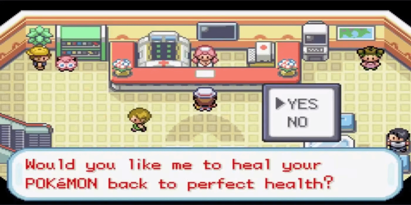 回顾系列历史,乔伊护士的形象并非一成不变。受限于《红/蓝》时期Game Boy的机能,早期像素形象较为简陋,直至《皮卡丘》版本才贴近动画设定。其服饰也历经多次演变,从任天堂DS时代的多样款式,到近年固定的粉白护士服,再到第九世代的红白帽搭配精灵球T恤。而在《宝可梦传说:阿尔宙斯》中,因背景设定在古代洗翠地区,恢复机制改为营地模式,导致该作成为主线系列中首次没有乔伊护士登场的作品。