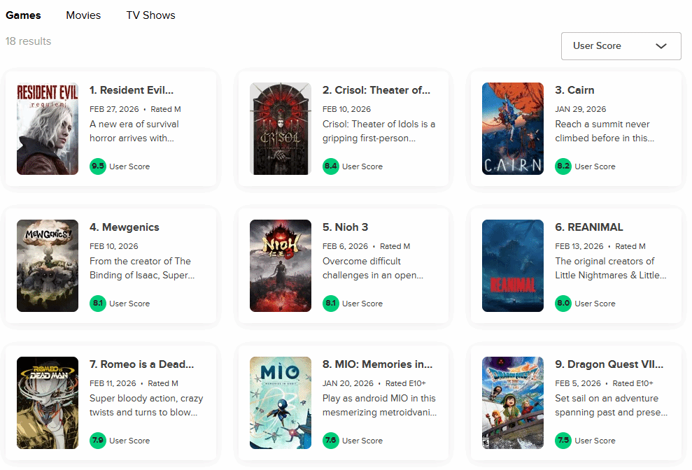 除了媒体赞誉,普通玩家的热情也毫不逊色。该作的用户评分目前以9.5分的高位稳居榜首,反映出大众对游戏品质的高度满意。此次成功很大程度上归功于制作团队的大胆创新,包括引入双角色切换机制以及为里昂量身打造的全新动作要素,这些新设计均获得了玩家的积极反馈。